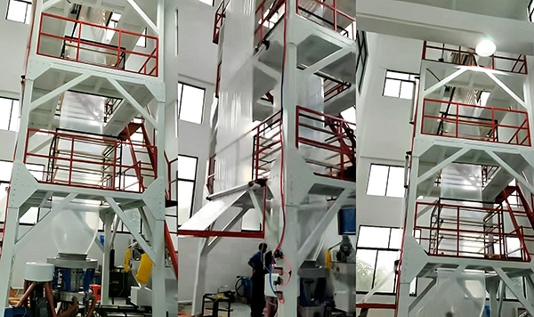 3、生產膜厚度均勻:ABC吹膜機采用先進的膜材料加工技術和控制系統,能夠生產出均勻的薄膜,保證產品的質量。