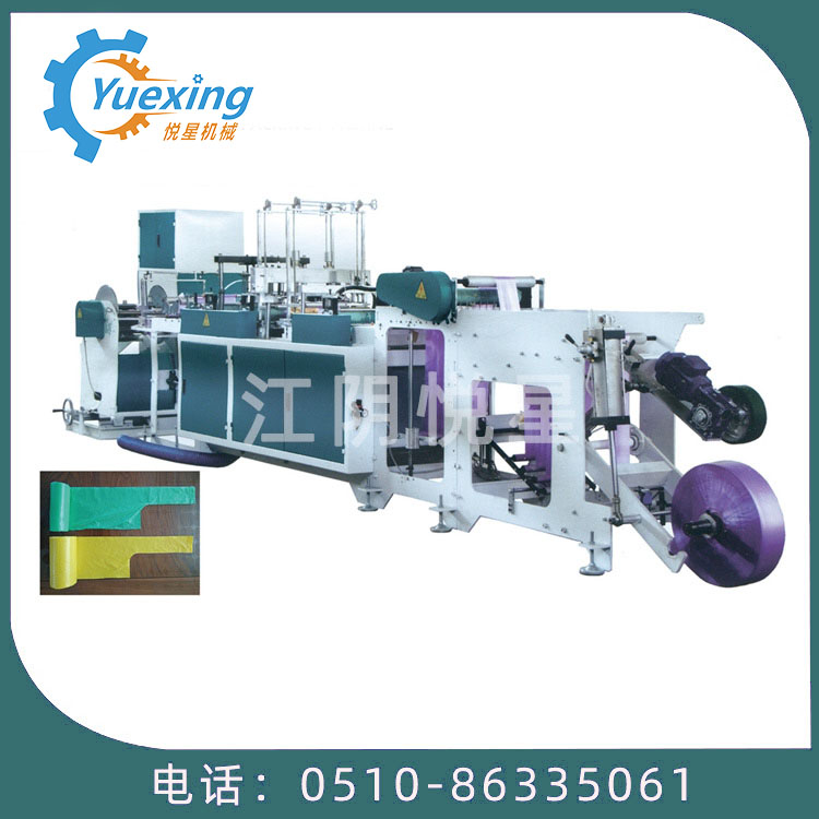 機(jī)器特性 此設(shè)備為生產(chǎn)連卷八折背心垃圾袋的專用設(shè)備,單通道高速無(wú)拉伸,操作簡(jiǎn)便,底封好,收卷整齊,個(gè)數(shù)準(zhǔn)確,手動(dòng)手卷。此設(shè)備采用全鋼板一體而成,用電220v照明電即可。
