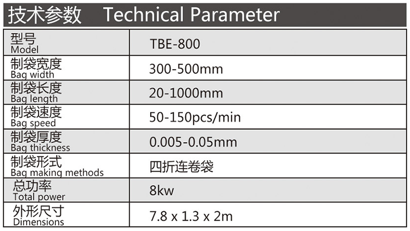 機器特性 此設備為生產(chǎn)連卷四折平底垃圾袋的專用設備,單通道高速無拉伸操作簡便,底封好,收卷整齊,個數(shù)準確,手動手卷。此設備采用全鋼板一體而成,用電220v照明電即可。